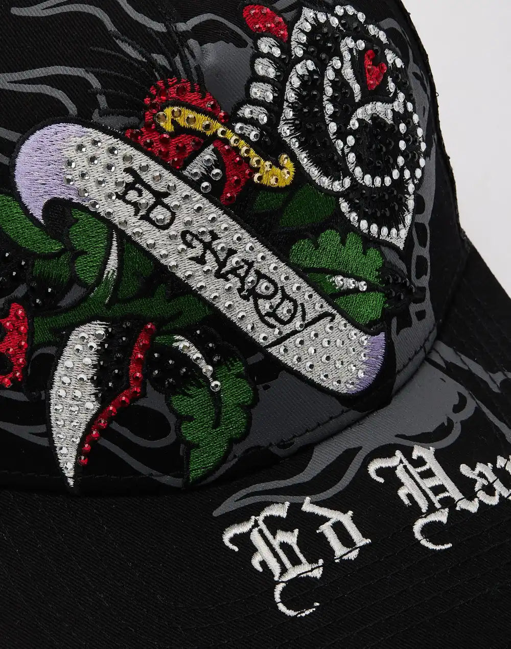 Ed Hardy Black Rose Rhinestone Trucker Hat