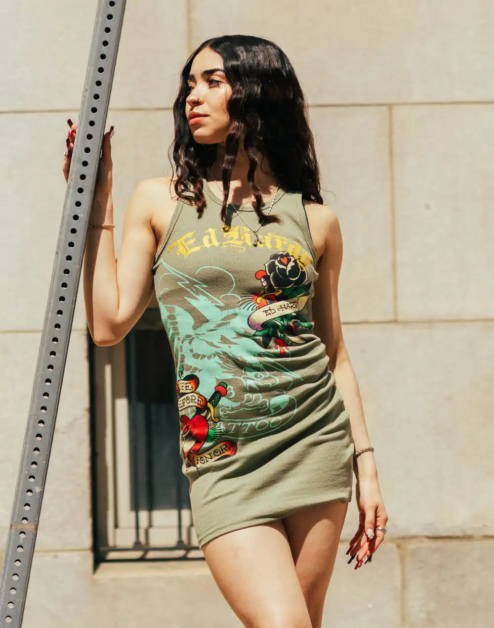 Make a fierce style statement in the Ed Hardy Black Rose Tank Dress, featuring bold tattoo-inspired rose graphics and a sleek, body-skimming fit.
