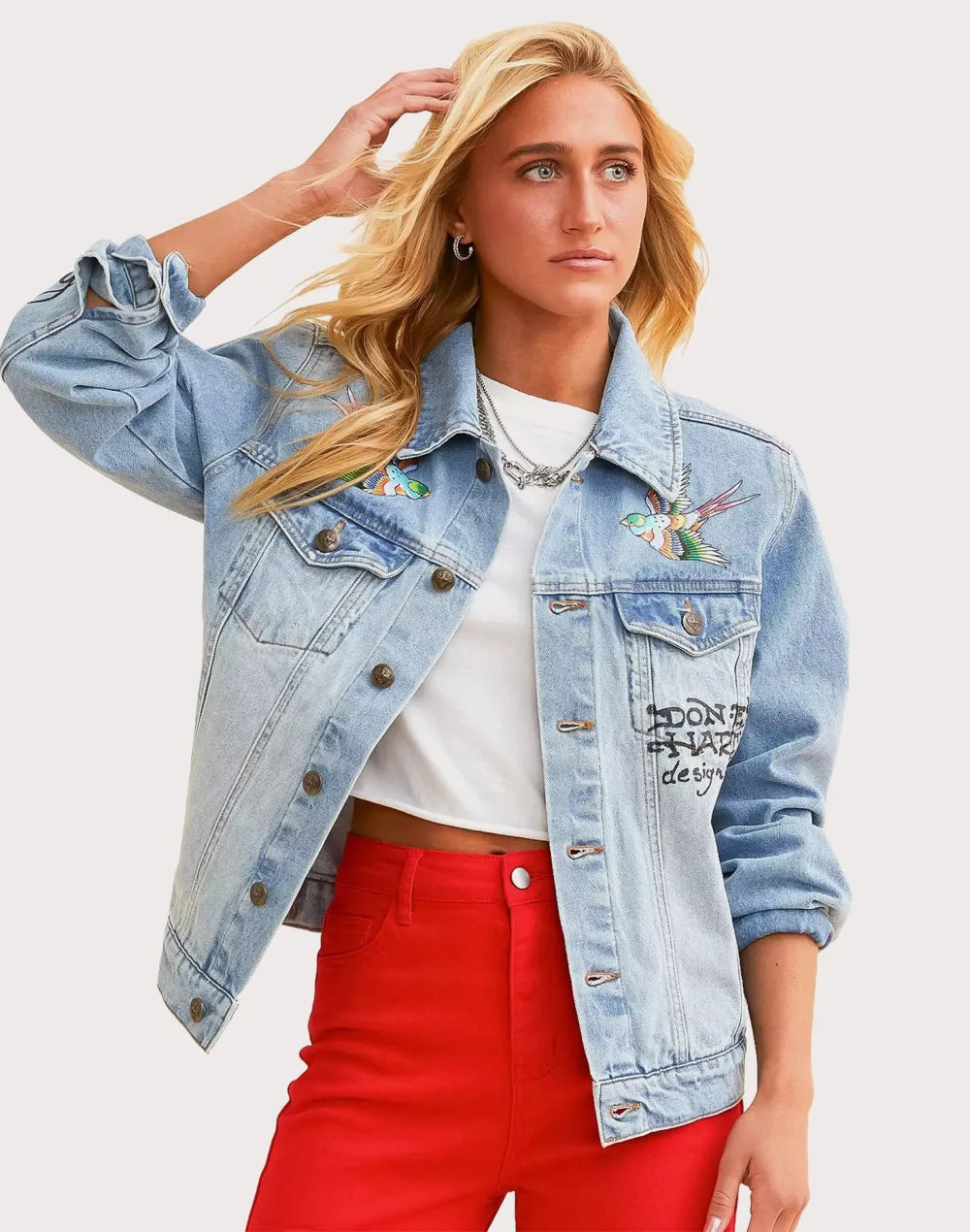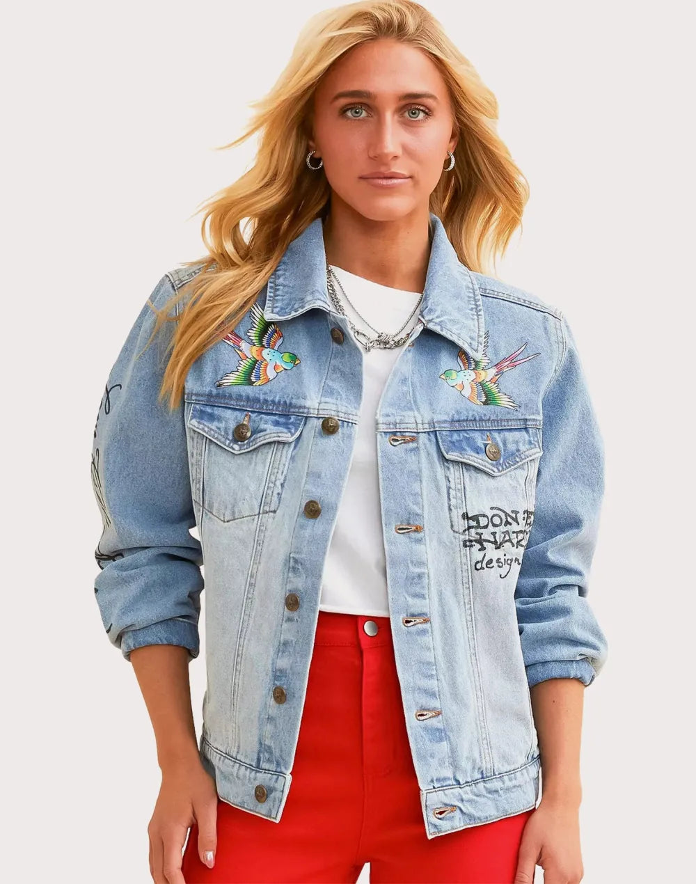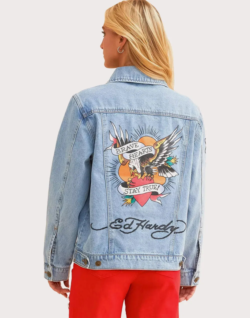 A denim jacket is always needed in the closet! Grab this Ed Hardy Brave Eagle Denim Women's Jacket to add some unique style and comfortability with each wear.