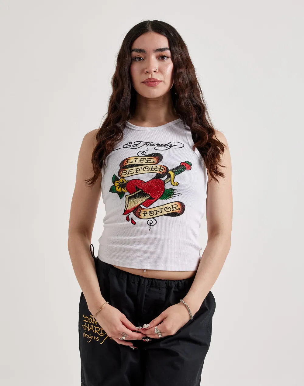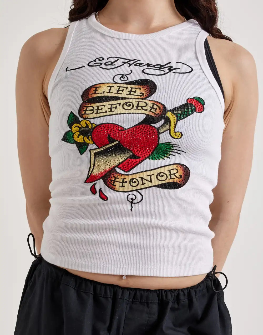 Ed Hardy Heart Sword Rhinestone Rib Tank Top