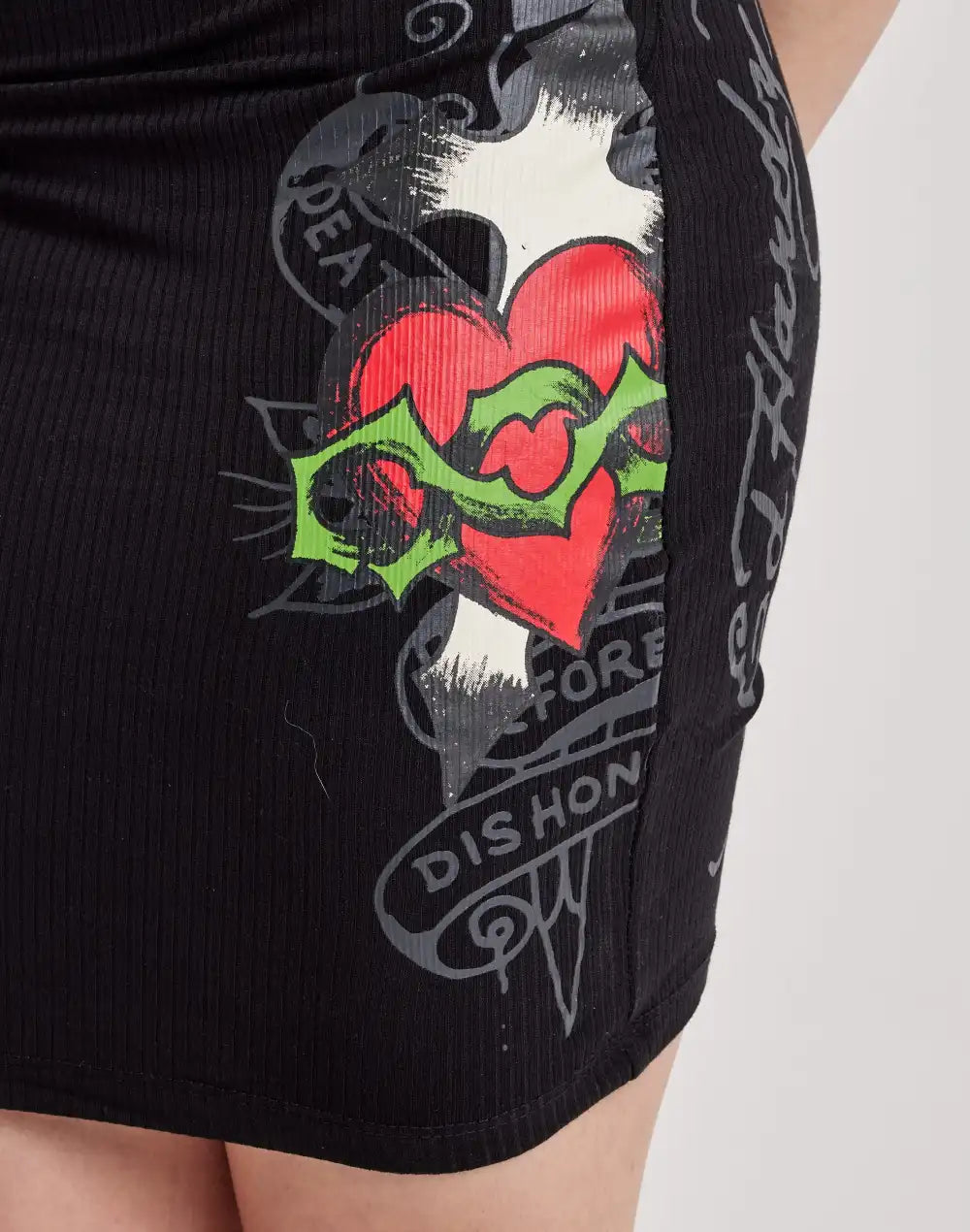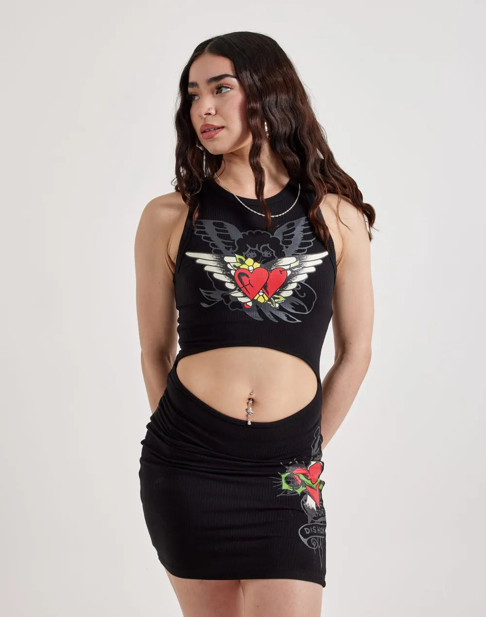 Make a fierce style statement in the Ed Hardy Heart Wings Cut-Out Tank Dress, featuring bold tattoo-inspired graphics and a sleek, body-skimming fit.