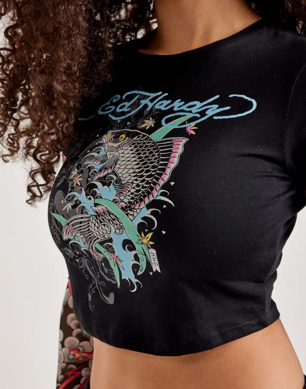 Ed Hardy Mesh Koi Fish Tattoo Long-Sleeve Top