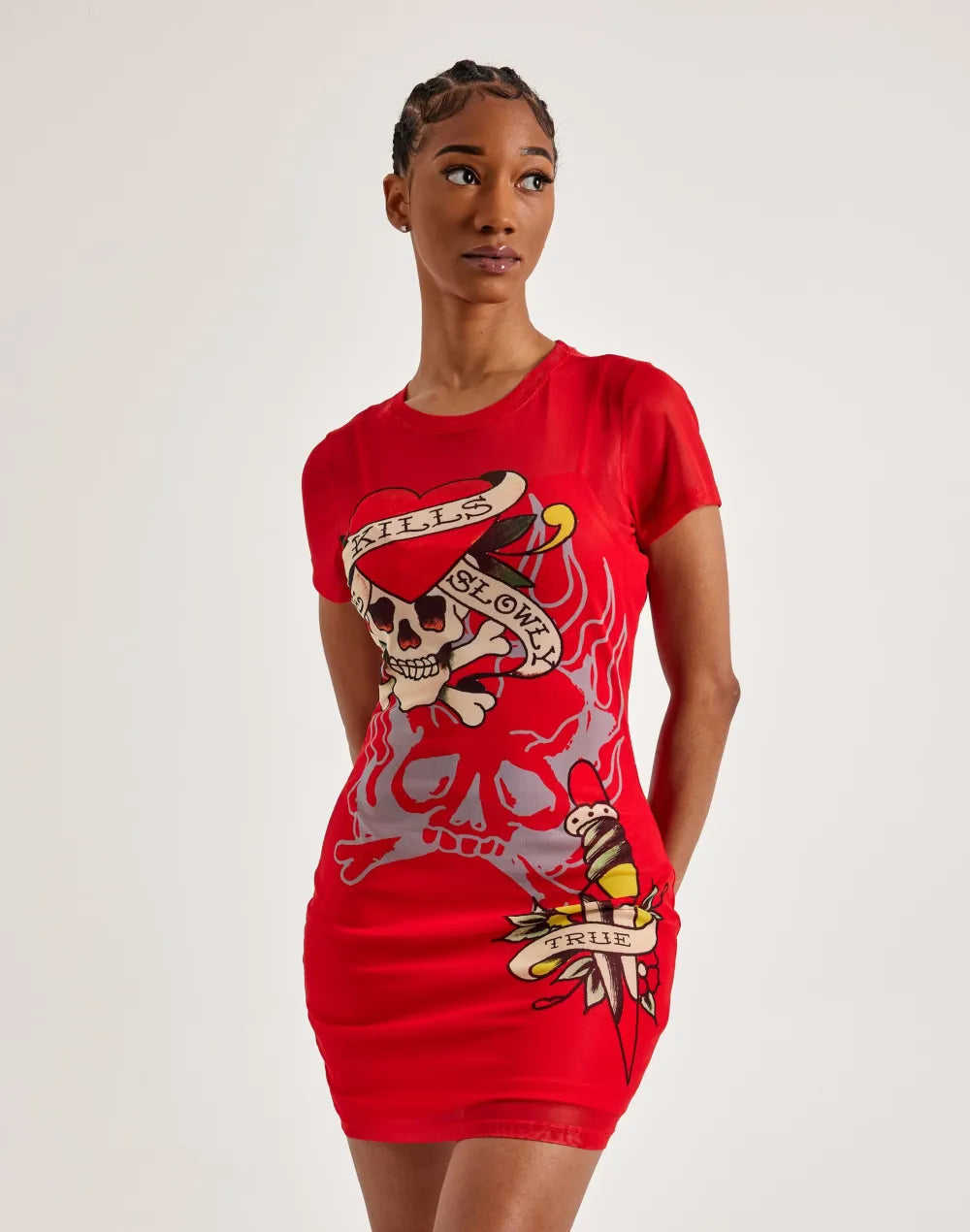 Ed Hardy Skull Dagger Mesh Tee Dress