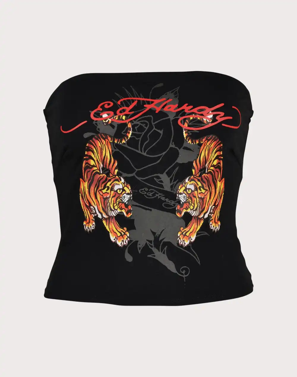 This Ed Hardy Tiger Tube Women's Black Top features layered archival Ed Hardy graphics and a black logo. Pair with ?your fave Ed Hardy bottoms to complete your look.