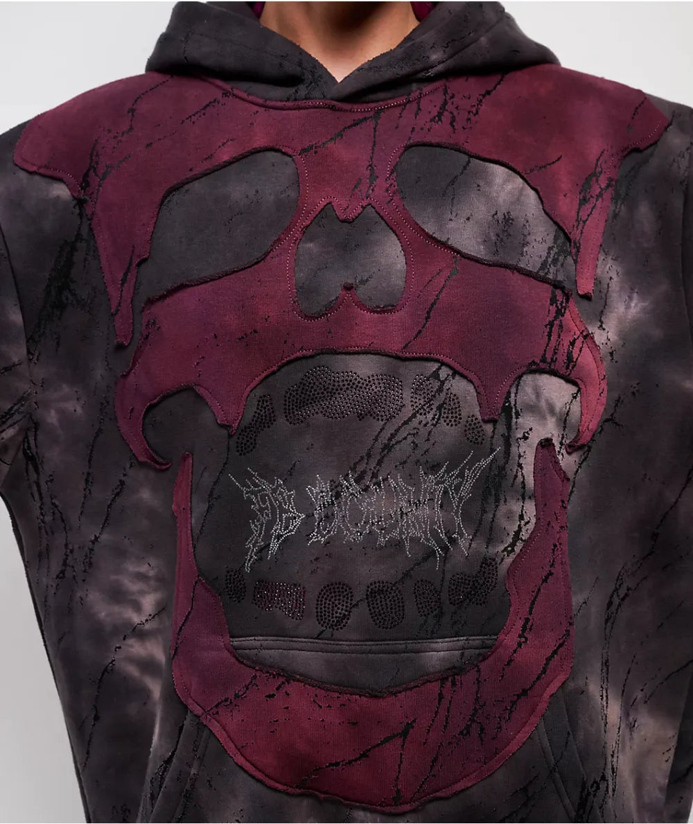 FB County Rhinestone Skull Black Wash Hoodie