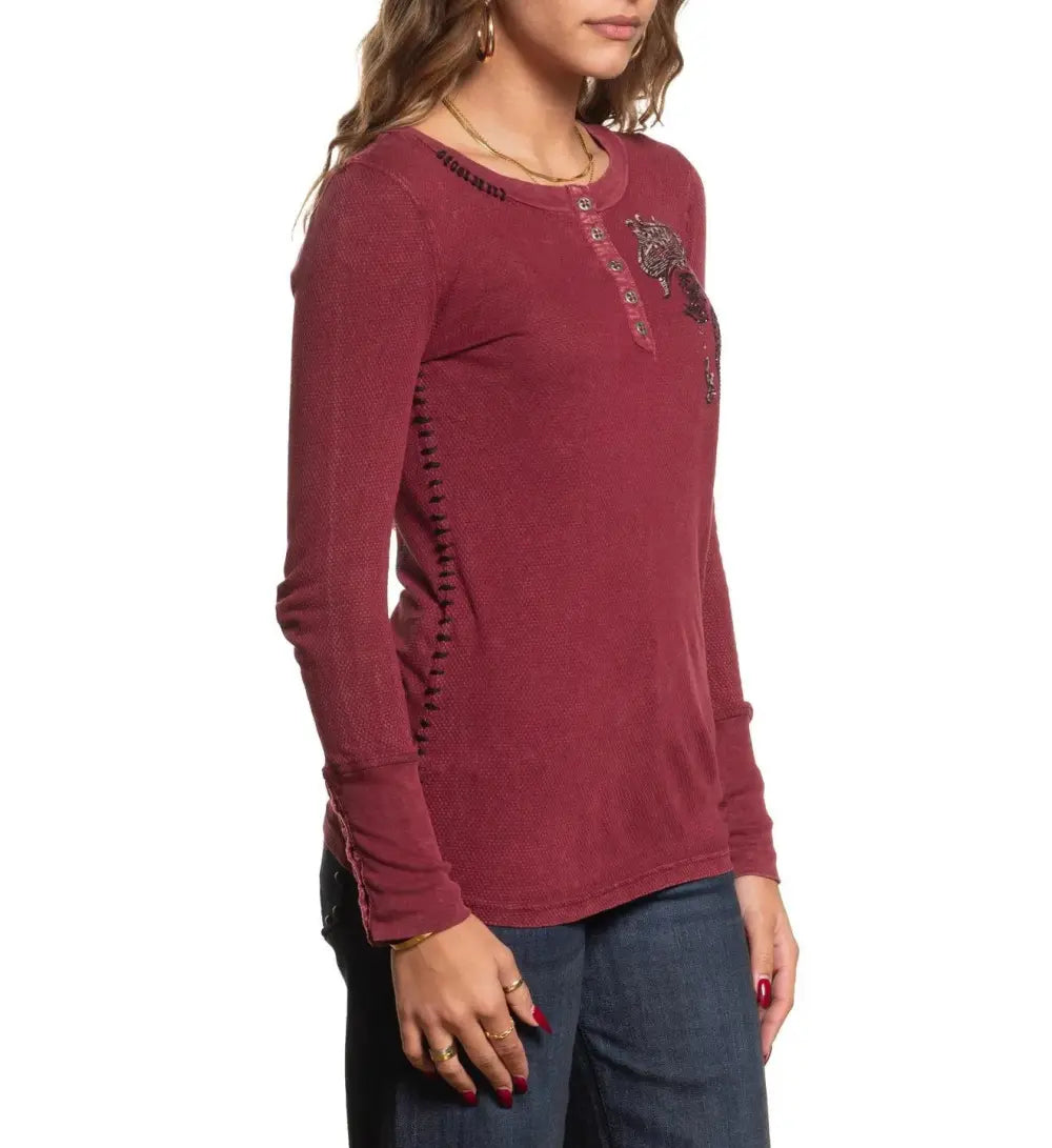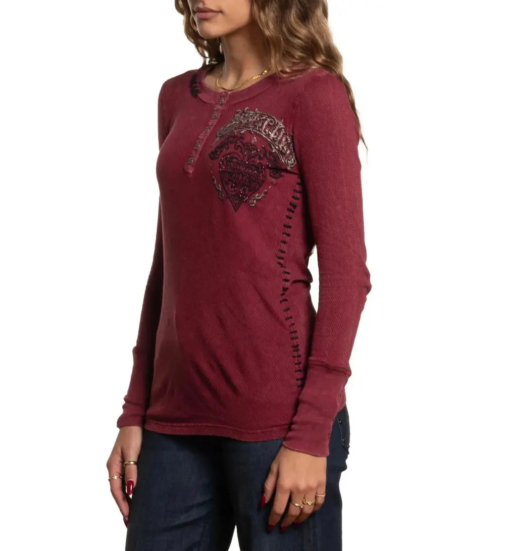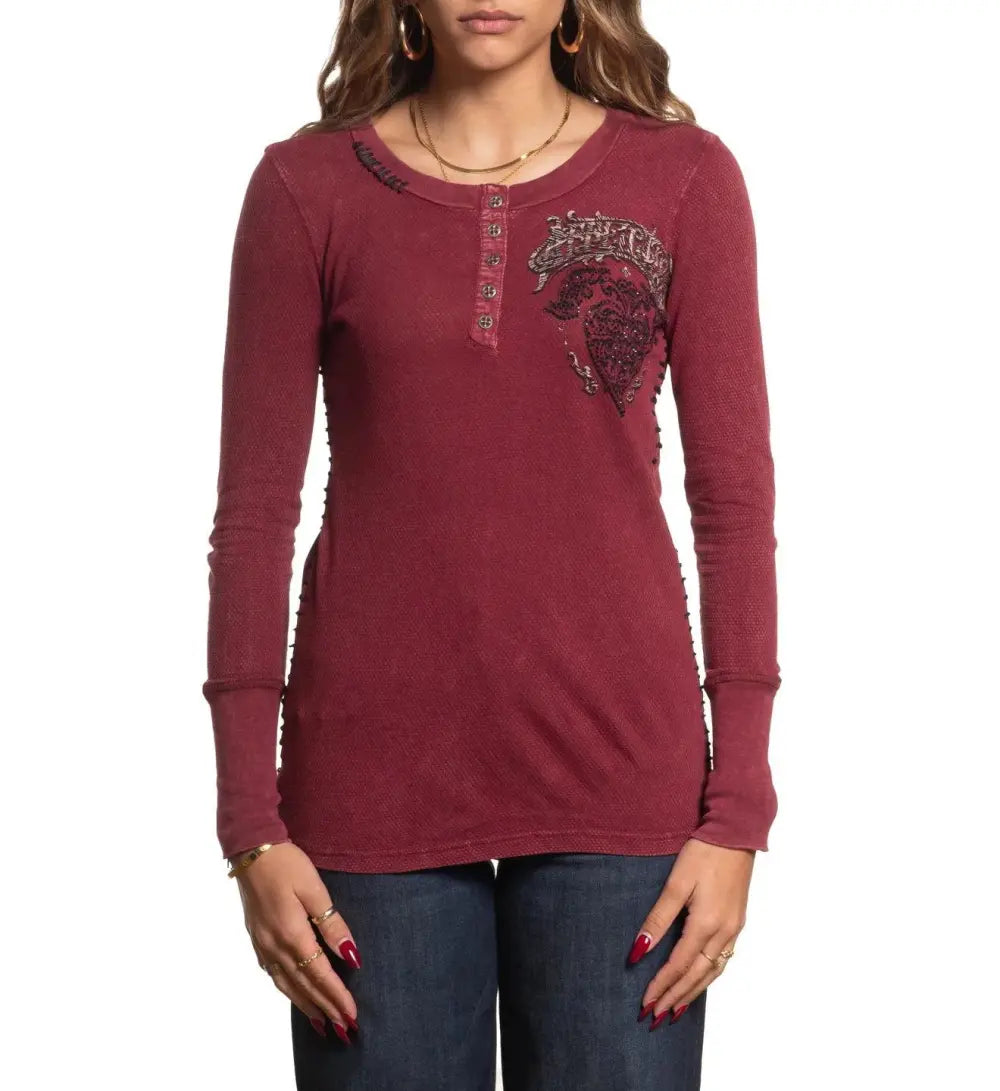 - Affliction Women's Feint Illusion Long Sleeve Henley Thermal