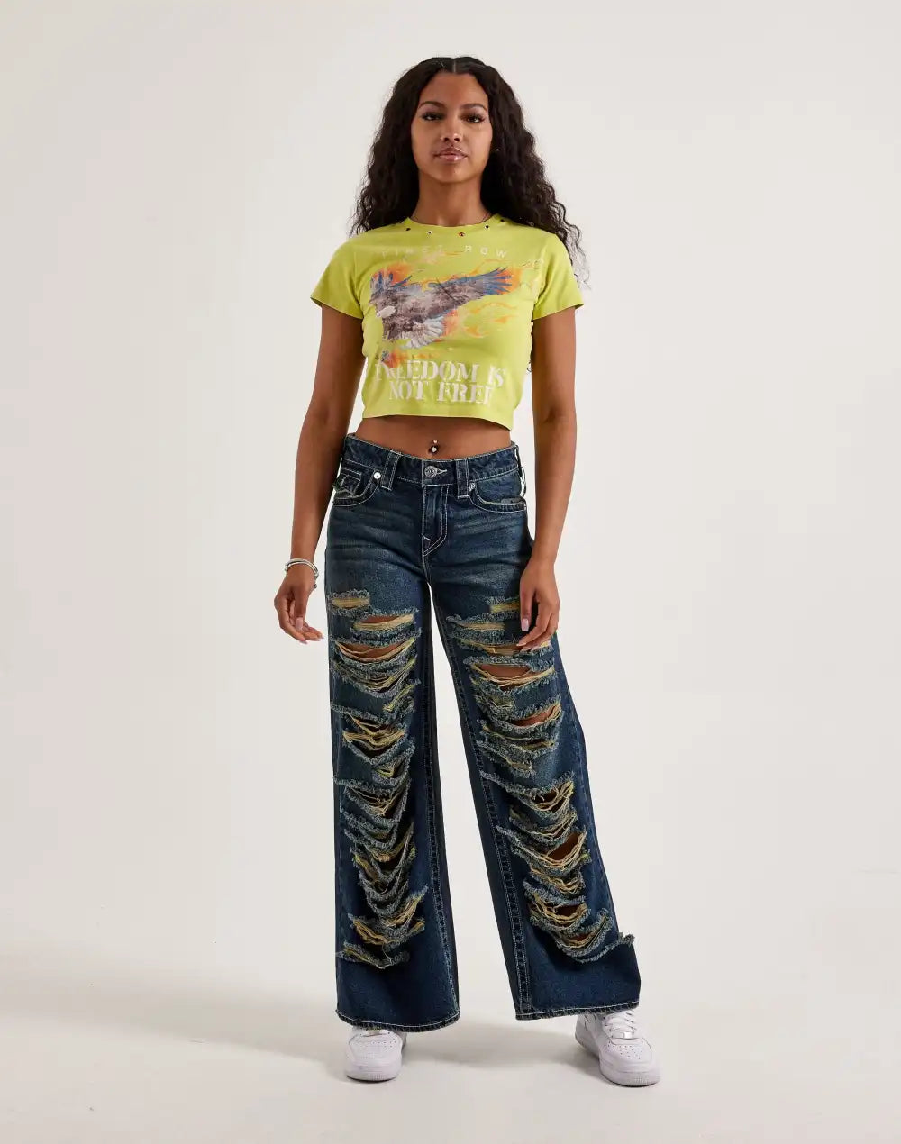 The First Row Eagle Baby Tee brings bold attitude to a classic cropped fit with striking eagle graphics and streetwear edge. Made from soft, stretchy fabric, this statement tee delivers both comfort and style for a fierce, everyday look.