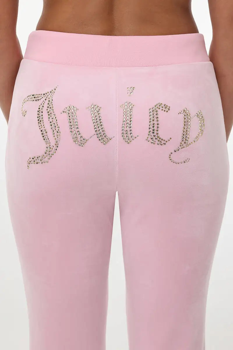 Our iconic Y2K Juicy embellishment brands the back of these velour pants in gold and gives them a luxe twist. Set the vibe by pairing with your choice of jacket, tank, or statement tee.