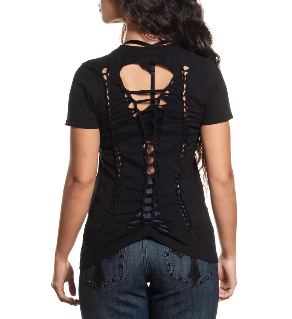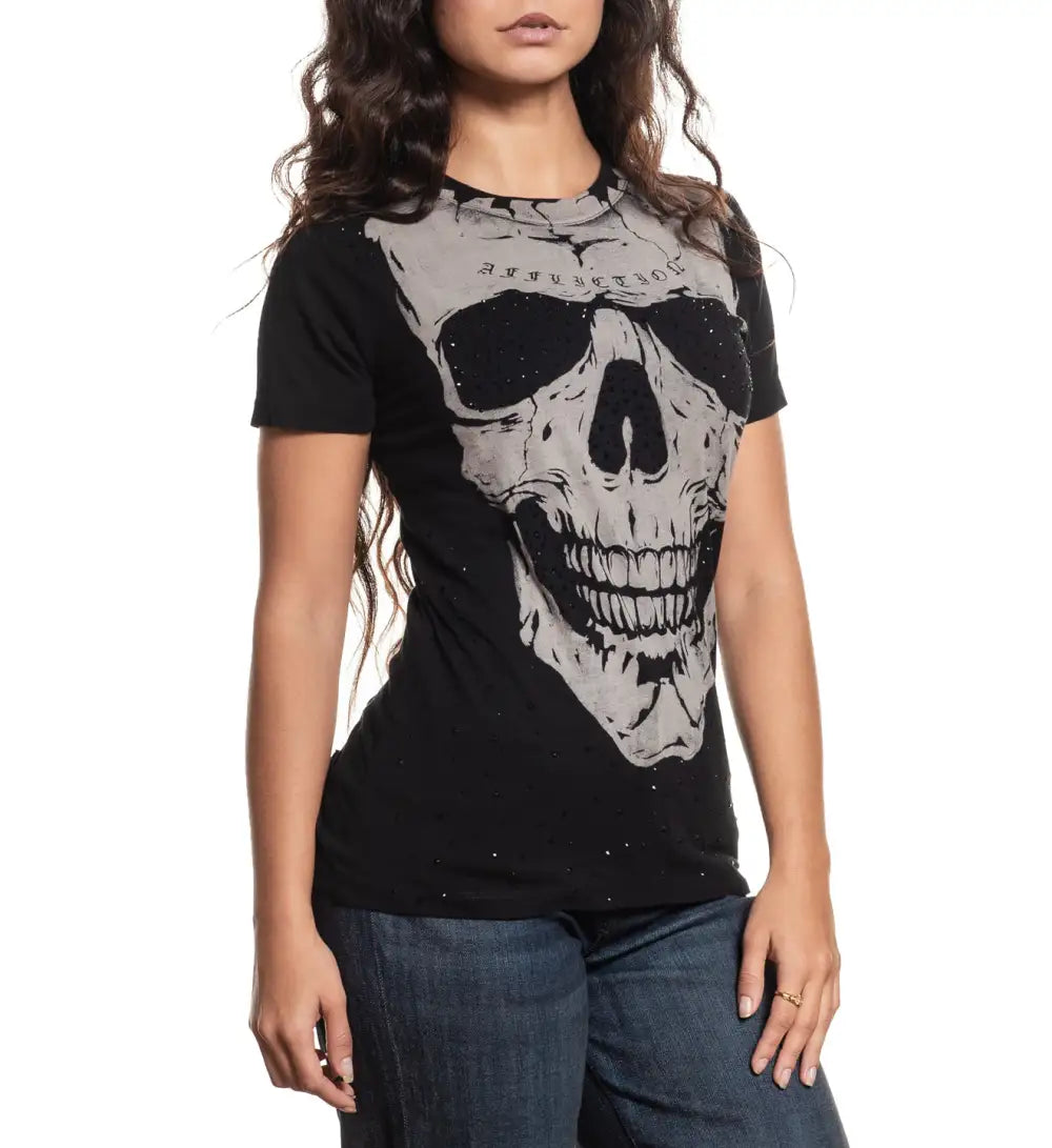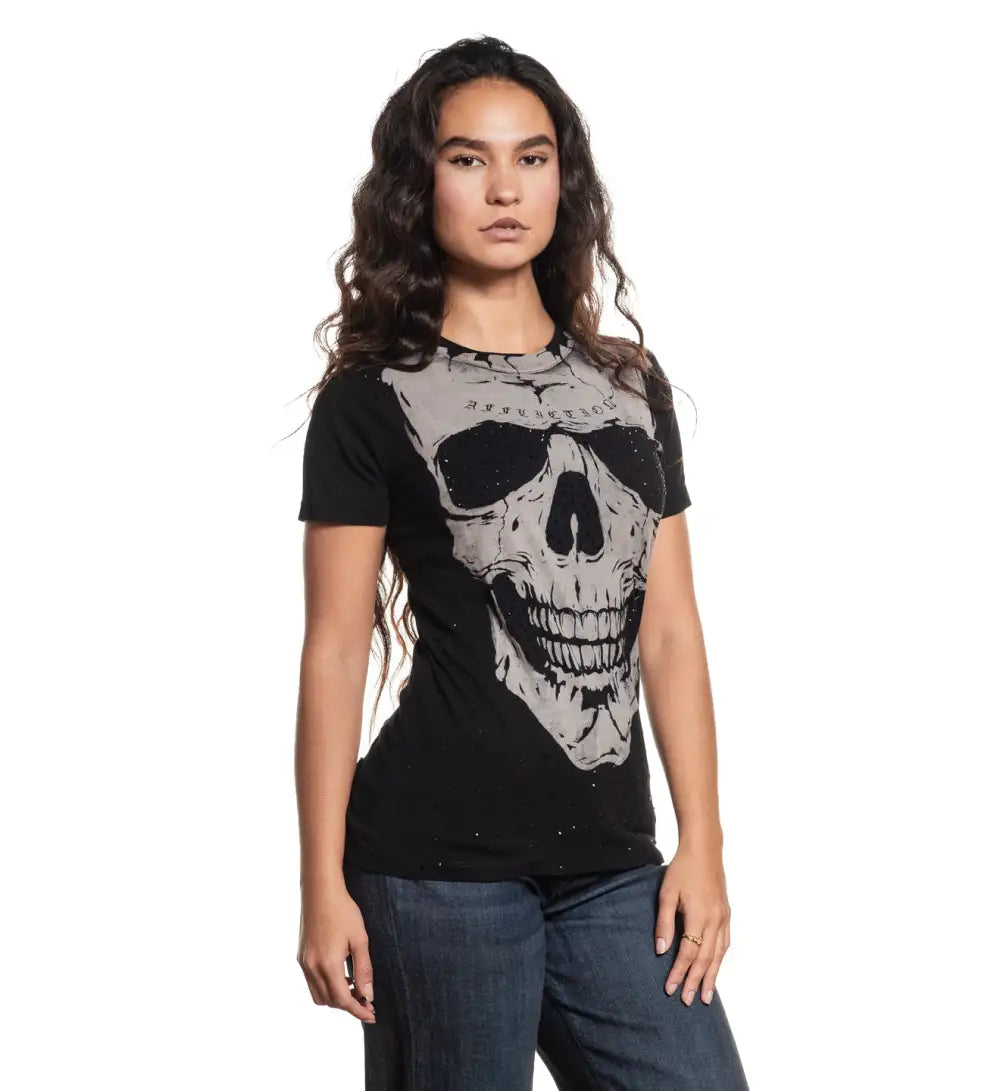 - Affliction Womens Skull Diamonds Short Sleeve Tee
