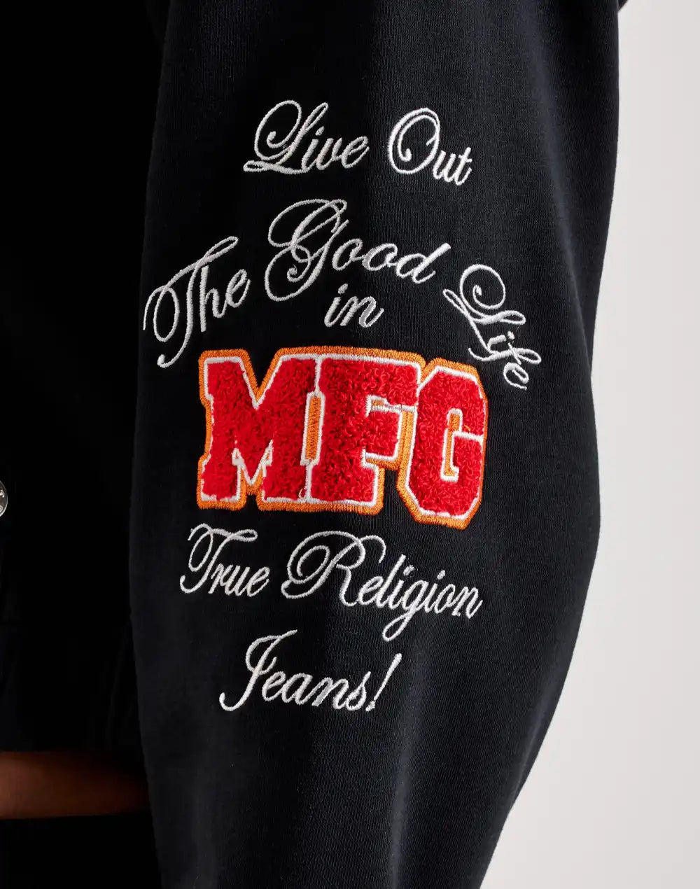 True Religion Crystal Patched Full-Zip Fleece Hoodie